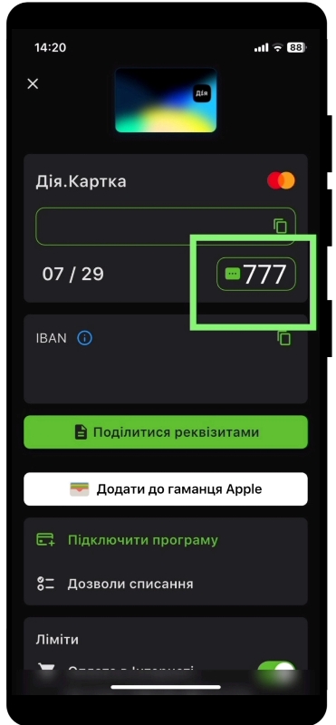4. Готово! CVV Вашої картки