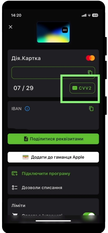 3. Натисніть на «CVV2»