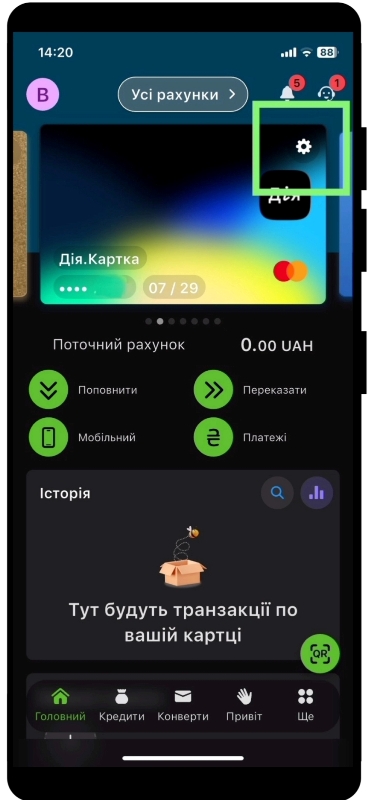 2. Виберіть необхідну картку та натисніть меню «Налаштування картки»