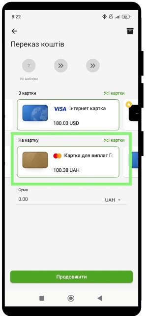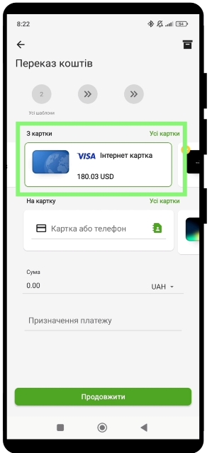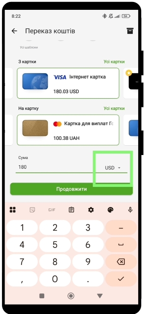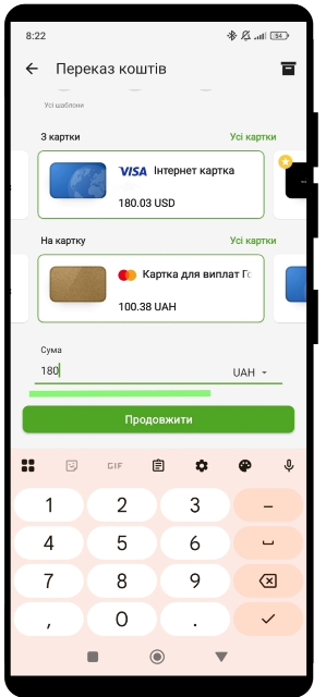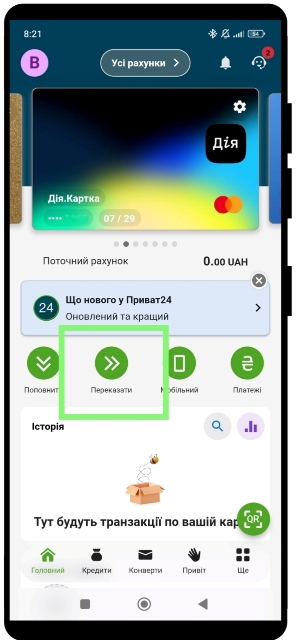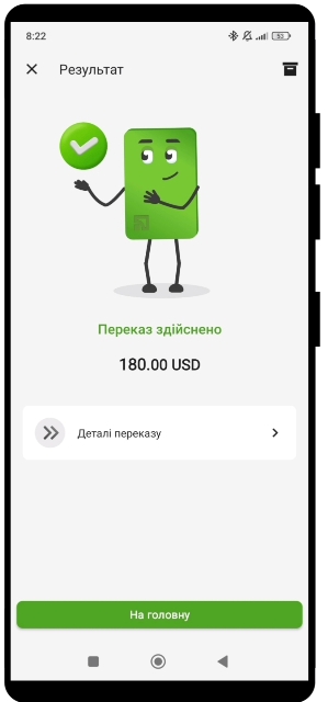 8. Готово! Перевод с валютной карты на гривневую осуществлен