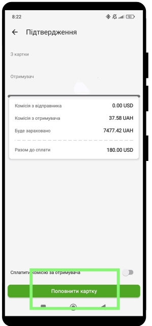 7. Подтвердите операцию обмена, нажав «Пополнить карту»