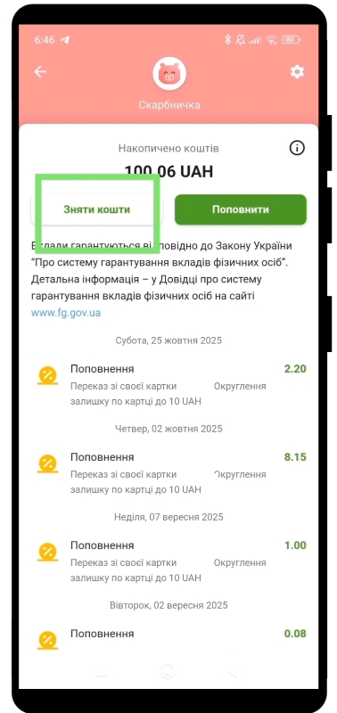 Вы можете снимать деньги со своей «Скарбнички» в Приват24 в любое время, для этого: